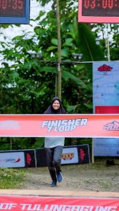 Di menit-menit terakhir cut off time, lintasan kembali menahan napas. Chindi, peraih podium 2 kategori 7x Loop Wanita, berjuang di batas kemampuannya. Langkahnya berat, napasnya tersengal, namun matanya menolak menyerah. Detik demi detik berlalu, hingga akhirnya ia muncul di tikungan terakhir.