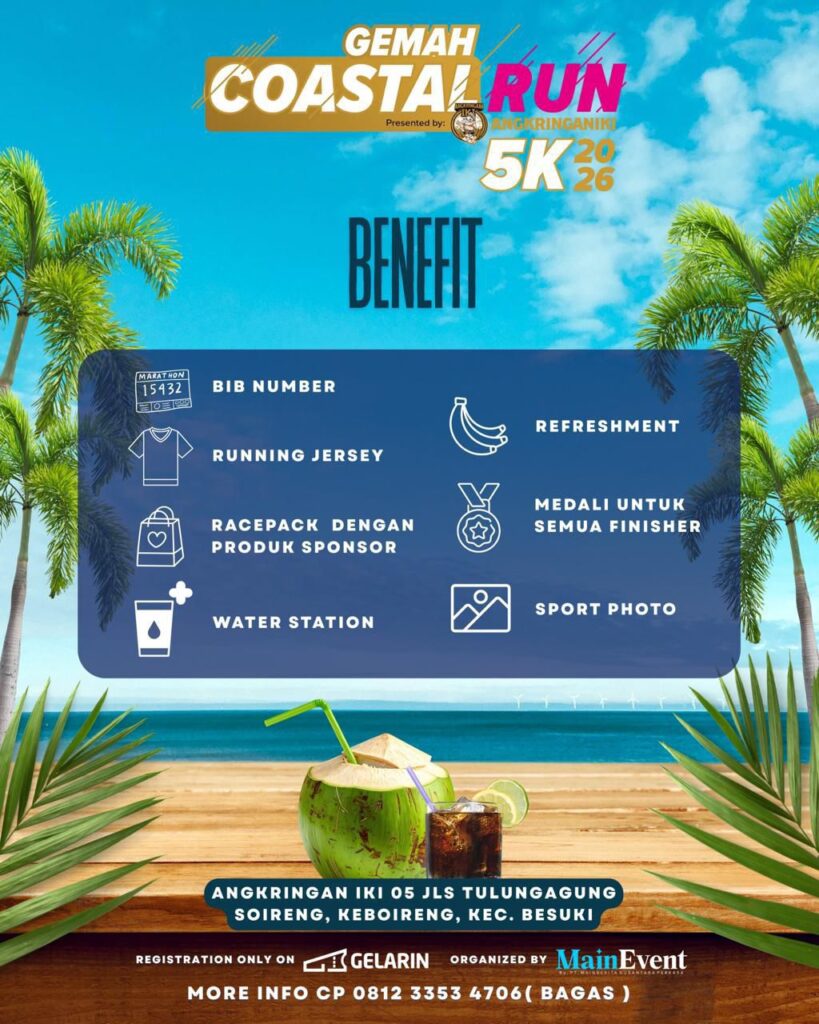 Dengan konsep yang unik dan lokasi yang eksotis, Gemah Coastal Run 2026 dipastikan menjadi momen seru yang sayang untuk dilewatkan. Jadi, sudah siap lari sambil menikmati indahnya pantai? Jangan sampai terlewatkan!