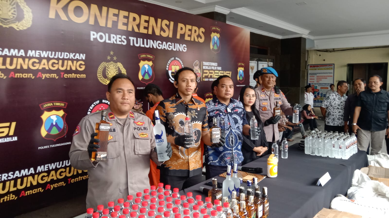 Polres Tulungagung pun tak tinggal diam. Melalui operasi gabungan antara Satreskrim dan Satnarkoba, petugas berhasil membongkar jaringan peredaran minuman keras (miras) daring tersebut, Jumat (7/11).