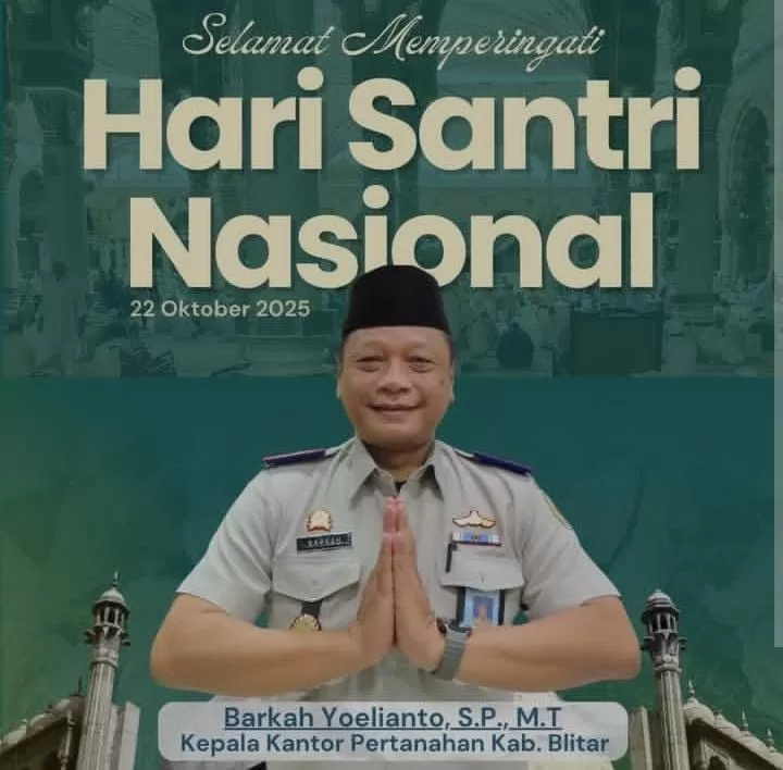 BLITAR — Dalam semangat memperingati Hari Santri Nasional 2025, seluruh jajaran Kantor Pertanahan Kabupaten Blitar menyampaikan apresiasi dan penghormatan kepada para santri di seluruh Indonesia yang telah berperan besar dalam menjaga iman, ilmu, serta persatuan bangsa.